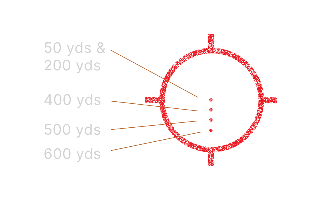 - Reticle: 68 MOA Ring/ Four 1 MOA Dots