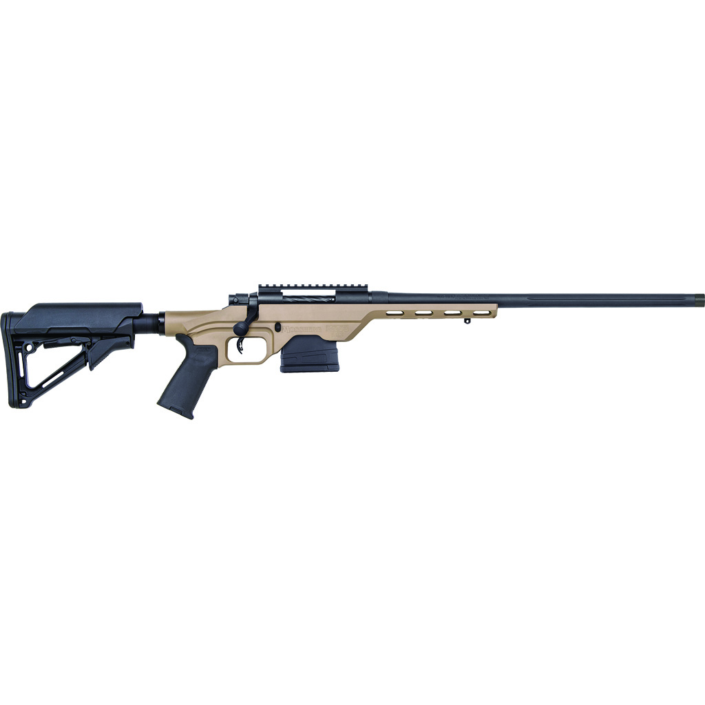 For accuracy, the MVP LC (Light Chassis) stock only makes contact with the receiver on the V-shaped bedding and recoil lug area. The Magpul stock has an adjustable LOP. It has a fluted, suppressor-ready threaded bull barrel. Compatible with AR15 magazines. It has the Lightning Bolt Action adjustable trigger, an oversized bolt handle.